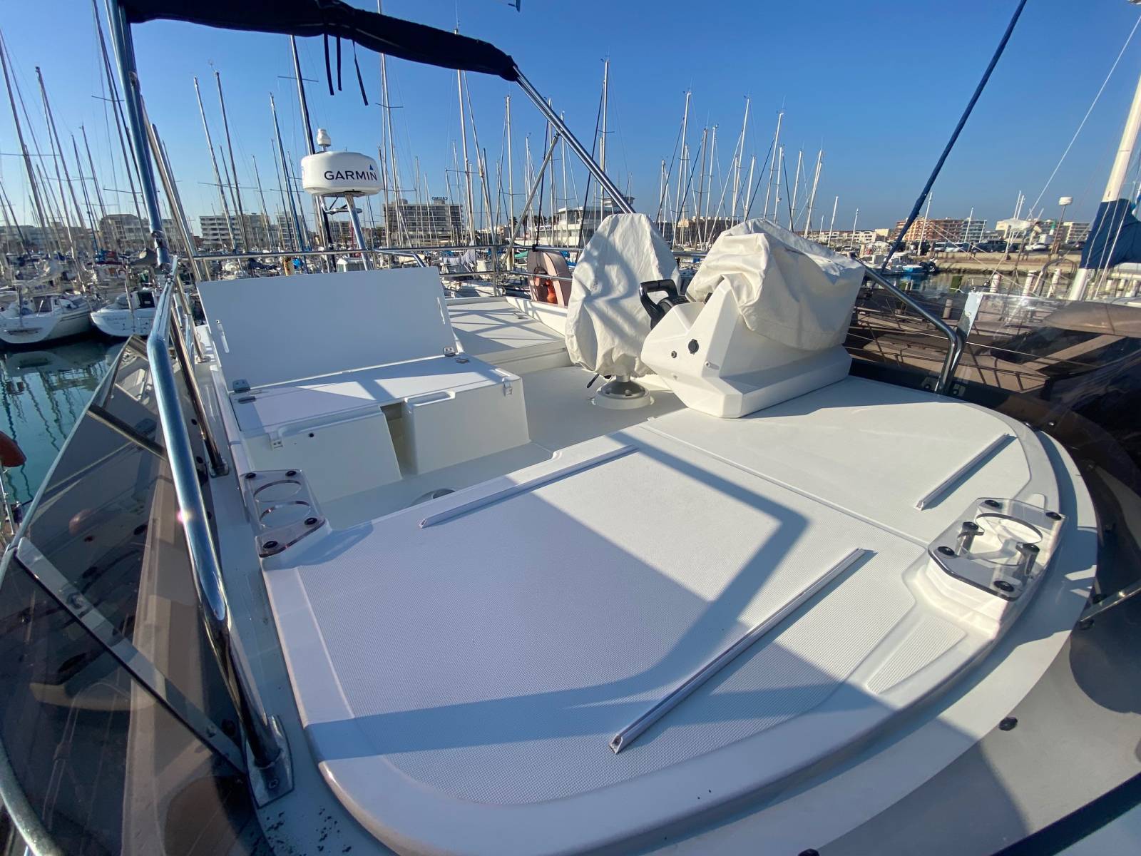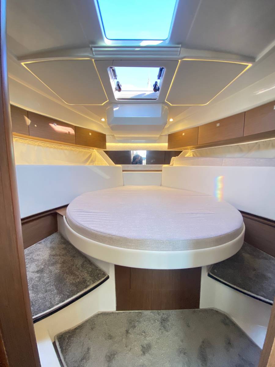 Véritable petit appartement sur l’eau aux performances et tenue de mer remarquable idéal pour du cabotage et vie à bord . Sa technologie embarquée sur les deux moteurs YAMAHA VIA UN JOYSTICK est un véritable atout permettant d’oublier la taille du bateau et assure un contrôle total de celui-ci avec deux doigts aussi bien dans la cabine ou que sur le fly.