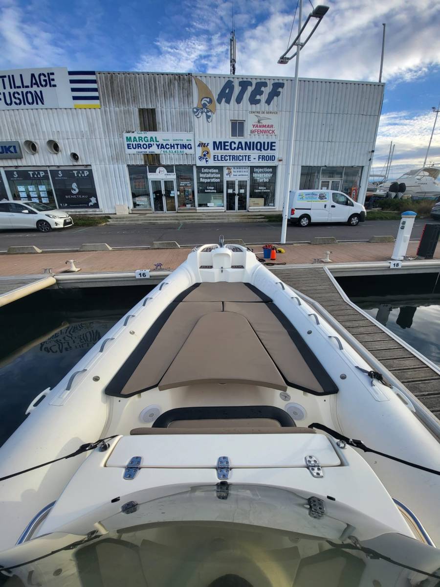 - Une motorisation élevée avec 2 x 300 CV 4 TEMPS MERCURY VERADO qui lui confère un rapport poids/puissance exceptionnel