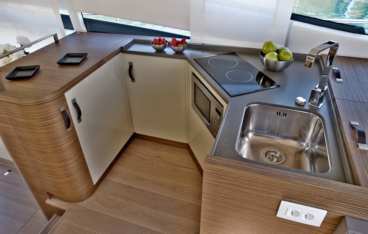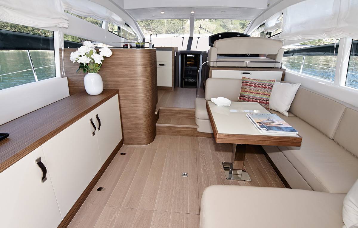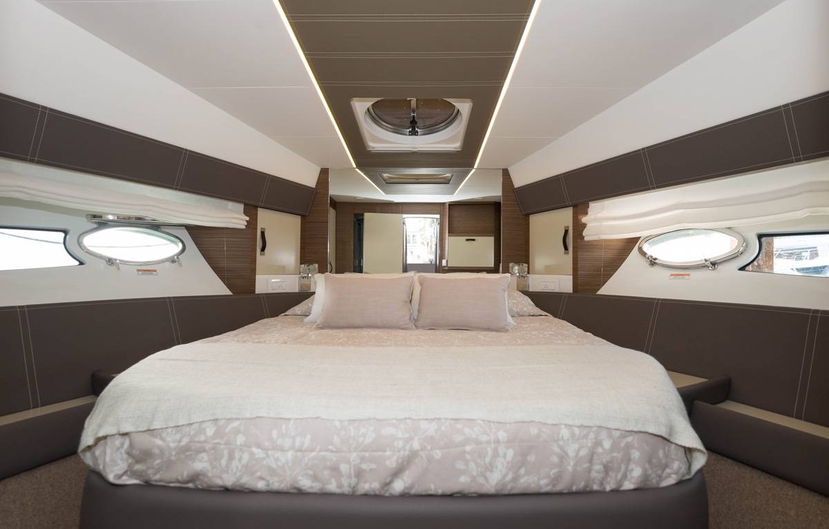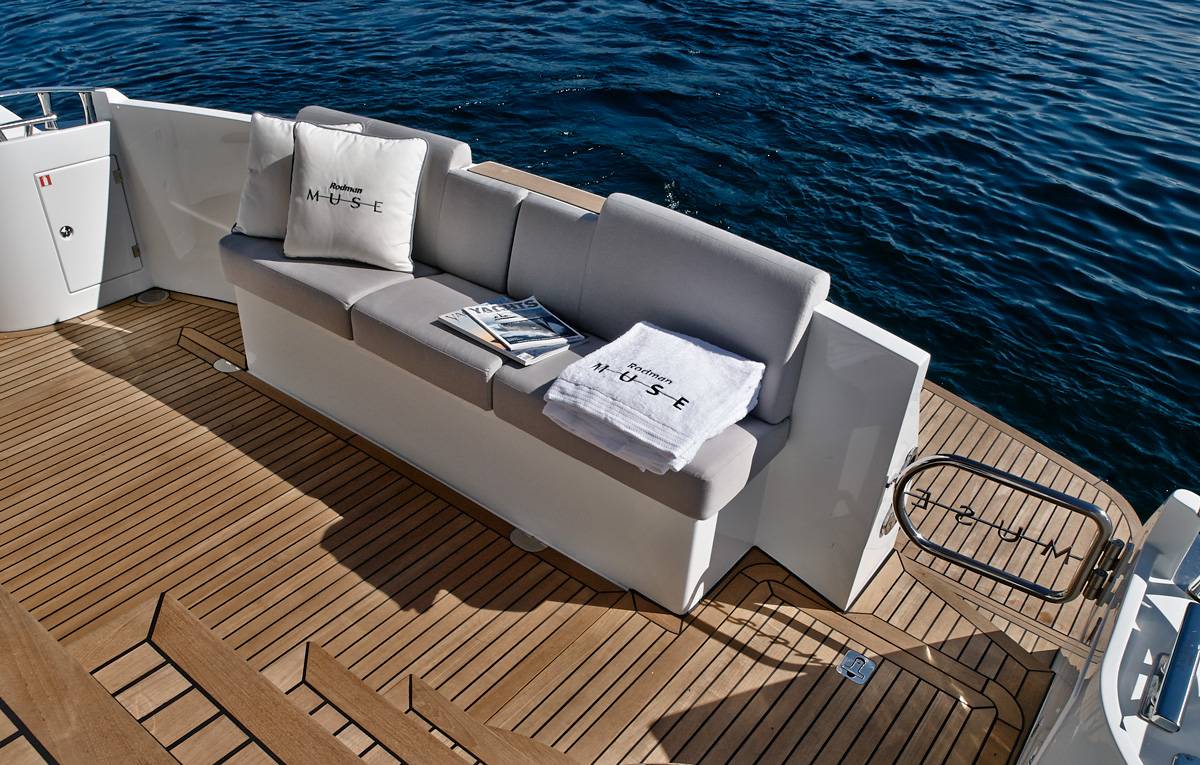Dans sa version la plus récente, le Rodman Muse 44 bénéficie d’une augmentation significative de la surface vitrée sur le pont principal, apportant une luminosité exceptionnelle à l’espace de vie. À cela s’ajoutent deux fenêtres latérales supplémentaires de chaque côté de la coque, situées au centre et à l’avant, qui inondent de lumière naturelle les cabines inférieures – notamment la suite propriétaire et les deux cabines invités.
