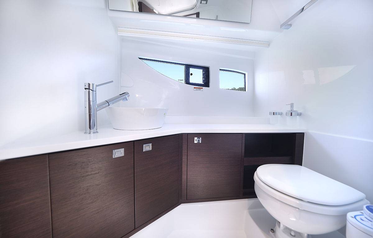 À l’ancre, le système ingénieux d’ouverture des assises arrière permet de relier naturellement le cockpit à la plateforme de bain, créant un espace extérieur unifié, vaste et dégagé. Ce nouvel agencement facilite l’accès à l’eau et multiplie les usages : baignade, farniente, apéritifs au soleil ou moments de calme face à l’horizon.