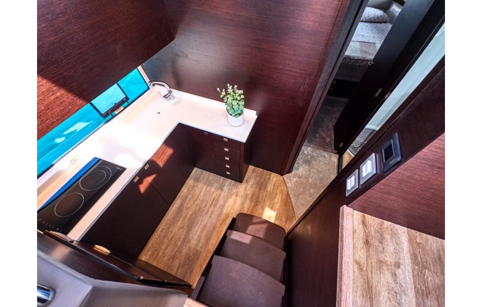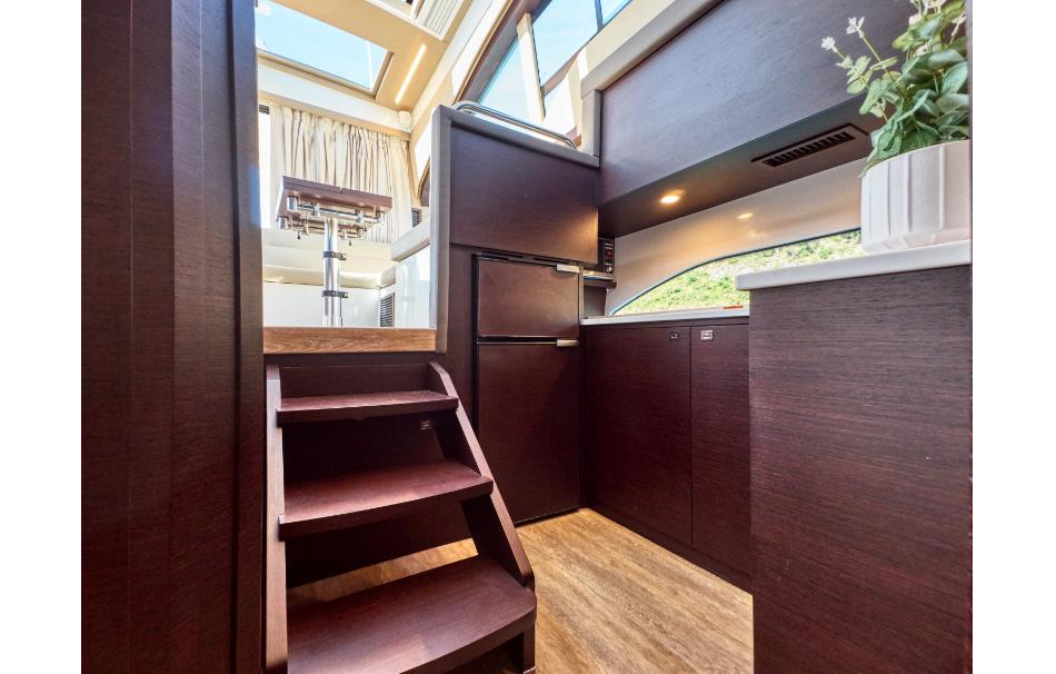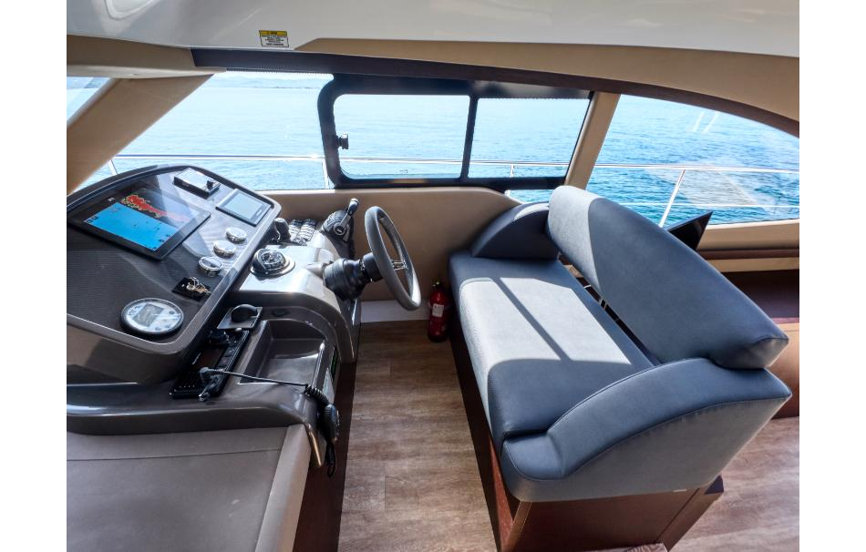 Pensée pour répondre aux attentes d’un large éventail de plaisanciers, cette version complète l’offre existante aux côtés de la version Flybridge. Elle se dote désormais d’un toit électrique coulissant, qui apporte non seulement une ligne plus dynamique à la silhouette du bateau, mais aussi une ouverture vers l’extérieur, idéale pour profiter pleinement des navigations en toute saison.