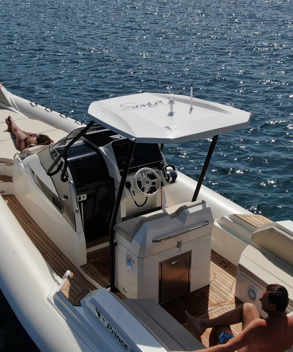 Parfait pour ceux qui souhaitent vivre la mer avec style, le Prince 33 Center Console, grâce à sa configuration polyvalente, convient aussi bien aux moments de détente et de vitesse entre amis ou en famille qu’à des soirées élégantes au mouillage. Il offre un équilibre idéal entre aventure et raffinement.