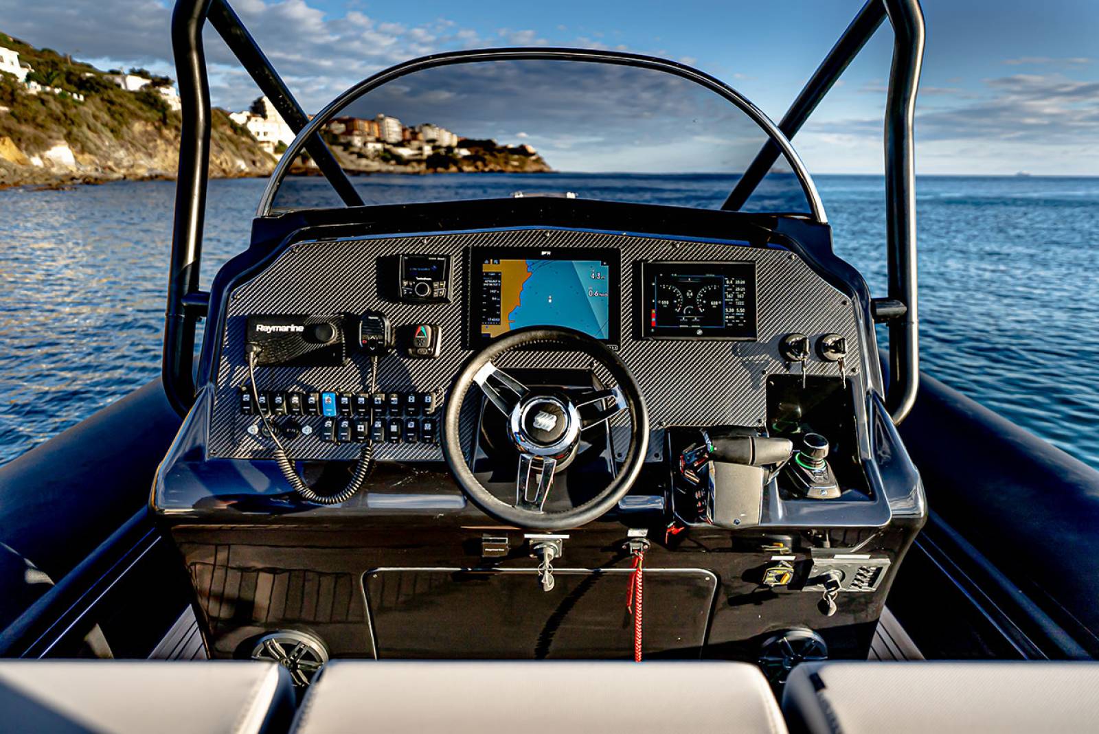 - Console avec pare-brise, mains courantes et volant