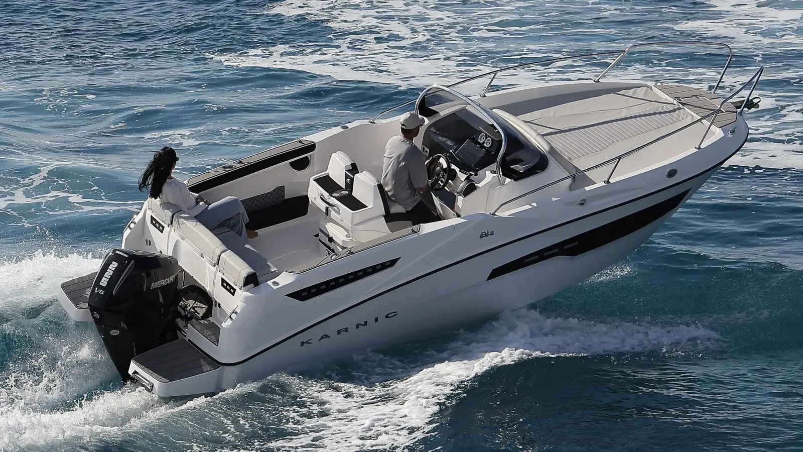 Véritable référence dans la catégorie des sundecks familiaux, le Karnic SL692 conjugue puissance, élégance et convivialité. Avec ses 7,15 mètres de longueur et sa capacité d’accueil de 7 personnes, il est taillé pour les escapades prolongées, les journées de farniente ou les sorties sportives.