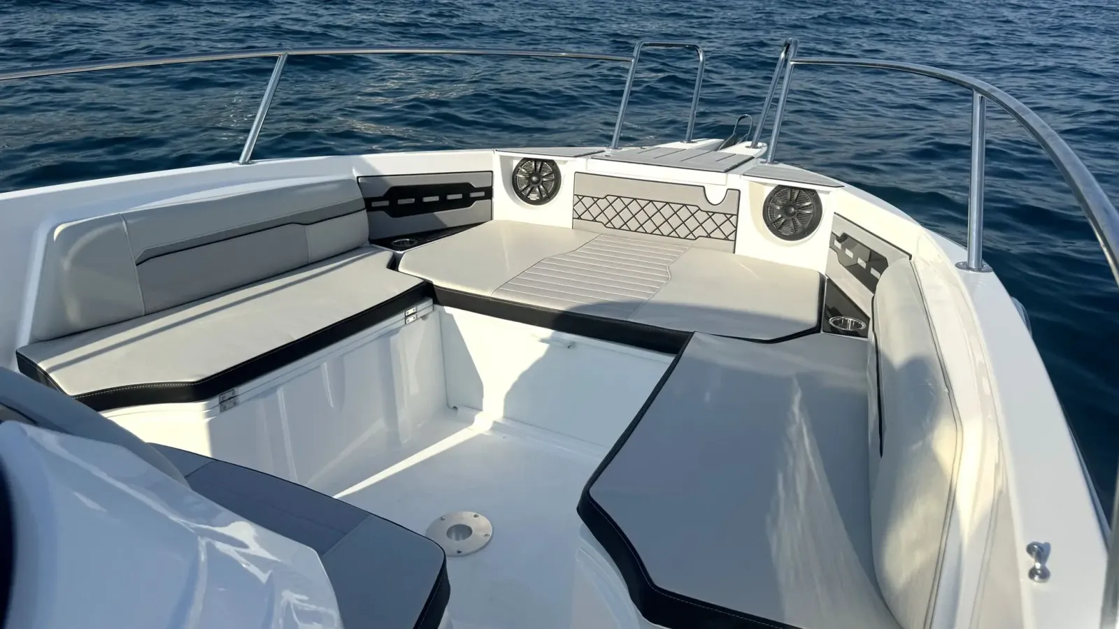 Sa cabine généreuse permet de ranger toutes vos affaires de la journée, avec la possibilité d’un WC marin, tandis que son cockpit arrière se transforme selon vos envies : espace repas, bain de soleil, zone détente ou pêche sportive.