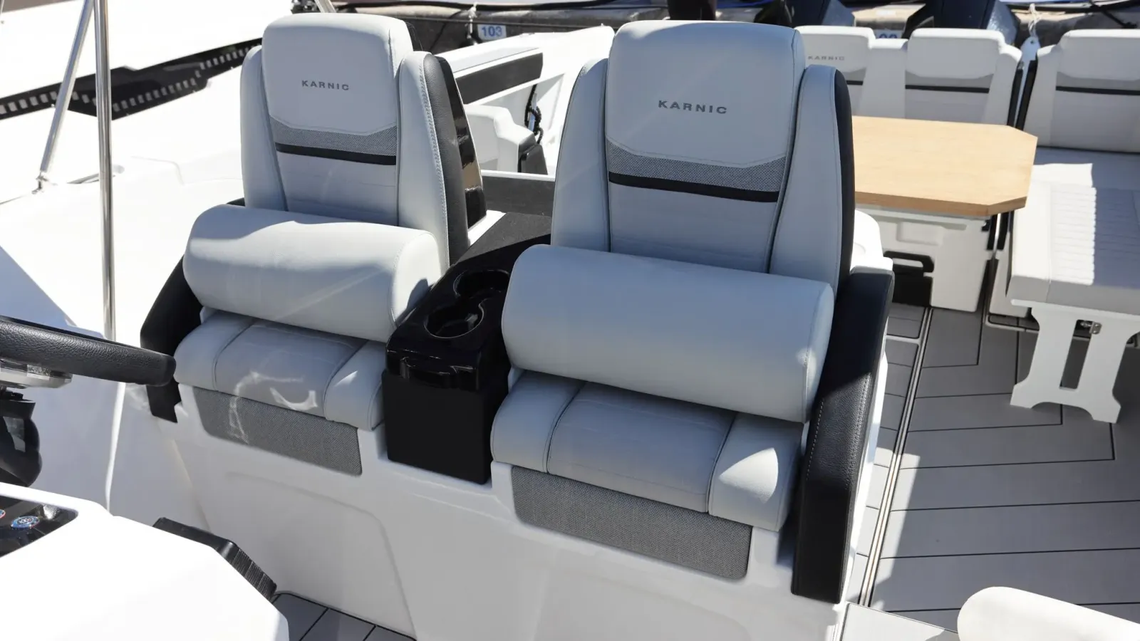 Le Karnic SL902 est le navire amiral de la gamme Walkaround. Avec ses 9,35 mètres de longueur et sa carène large de 2,96 mètres, il offre des volumes dignes d’un véritable yacht tout en conservant la maniabilité d’un bateau à moteur hors-bord.