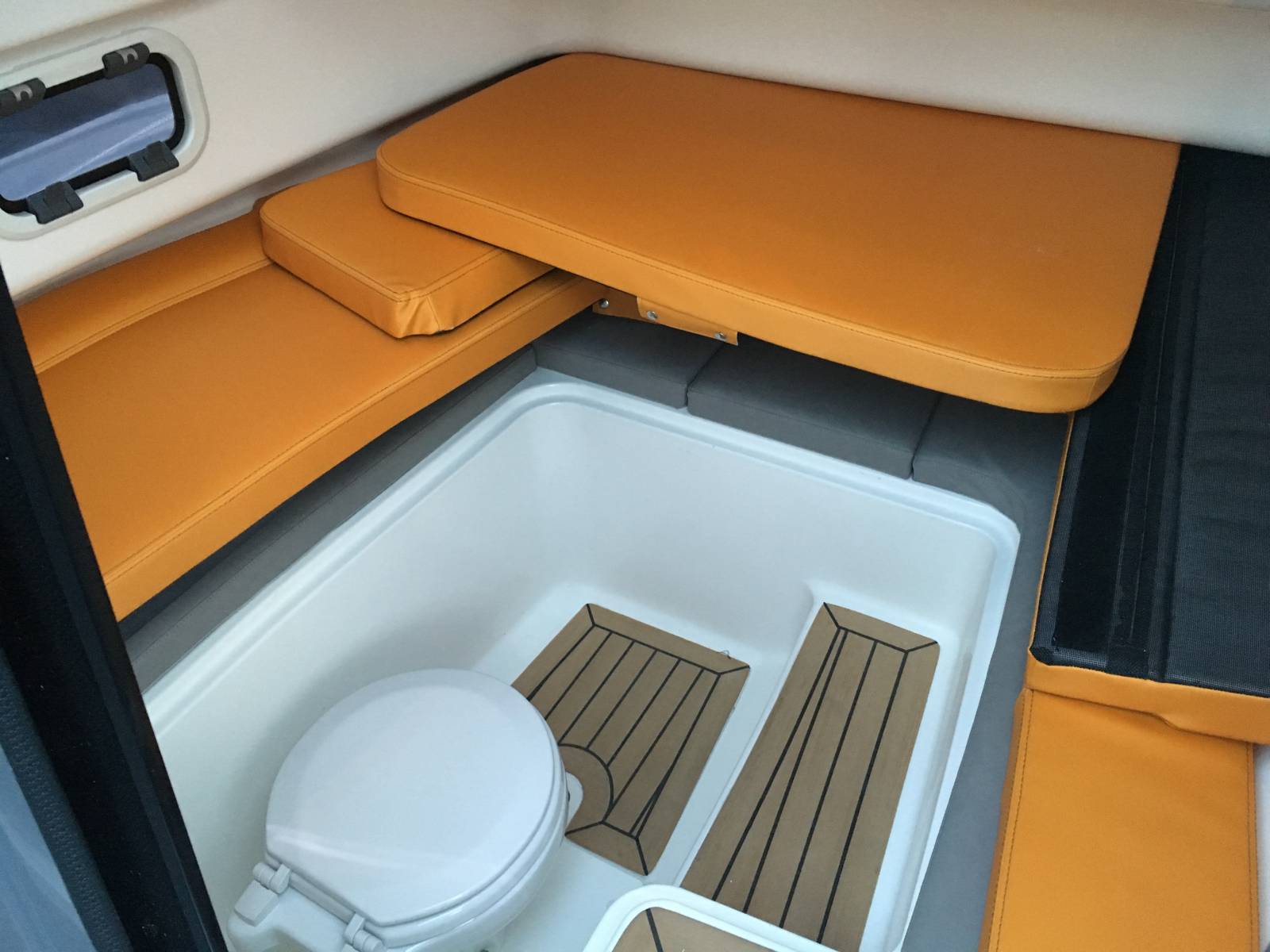 Cabine double couchage avec sellerie complète et WC marin
